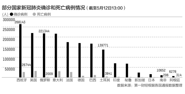 十年之后,2020年,全球遭遇了新冠肺炎疫情的突袭。1月20日~2月19日,可谓“中国增+全球少”的1.0阶段;2月20日~3月6日,则为“中国稳+全球增”的2.0阶段;从3月7日至5月11日,疫情已经进入“中国停+全球飙”的3.0阶段。在这八个多星期里,中国境外每日新增确诊人数从3月7日的4027例猛增至5月11日的71102例,全球累计确诊人数从10.63万飙升至5月12日的417.21万,增长了39倍之多。