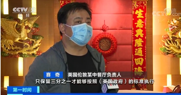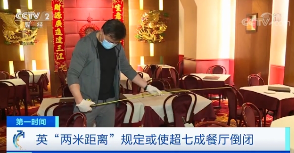 英国伦敦某中餐厅负责人赛奇:按我们目前的情况看,必须保证两米安全社交距离意味着我们肯定要去掉三分之二的座位,只保留三分之一才能够按英国政府的标准执行。