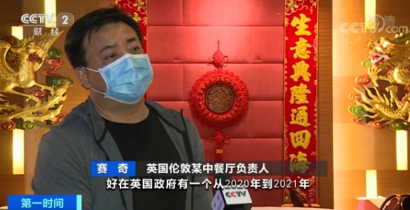 英国伦敦某中餐厅负责人赛奇: 原来我们一周营业额大概在6万英镑左右,到现在限制令出台将近七周了,也可以算出来在这期间餐厅的损失。好在英国政府可以免掉从2020年到2021年期间的地税,但是我们还有房租这个非常重的负担,以及要保留员工的工资,这个支出也是非常大。