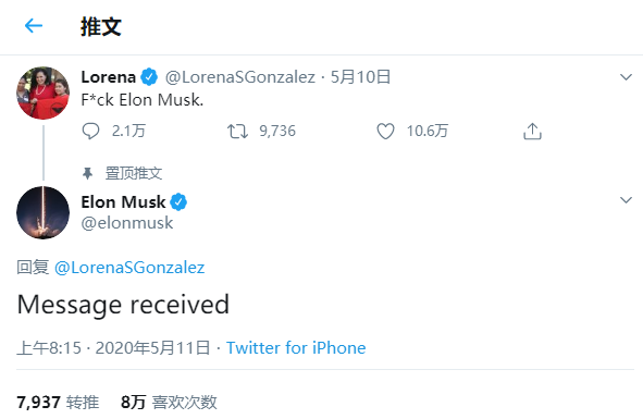 5 月 1 号到 2 号的两天时间,算上转发,马斯克一共发了 10 条推特,平均转发评论数以万计,放到中国的社交网络环境中,这比微博粉丝上亿的顶流明星更加顶流。