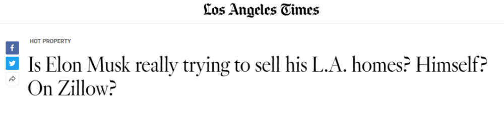 根据《洛杉矶时报》的报道,马斯克真的在房地产网站上挂牌了他位于洛杉矶贝莱尔地区的两处房产,分别售价 950 万美元(近 7000 万人民币)和 3000 万美元(约 2.1 亿人民币)。