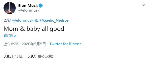 5 月 5 日,马斯克一句「母子平安」,让全世界特吹/特黑们纷纷举杯庆贺,一杯敬伟大的母亲,还有一杯,敬的是应该会安分不少的马斯克。