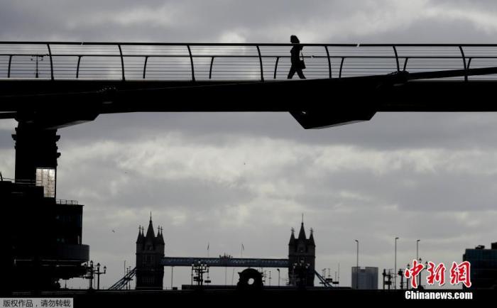 当地时间5月11日,英国伦敦,行人步行穿过泰晤士河上的千年桥。10日,英国首相鲍里斯·约翰逊宣布一项“有条件的计划”,逐步放松因新冠肺炎疫情采取的严格封锁措施,开始重新开放社会和经济。