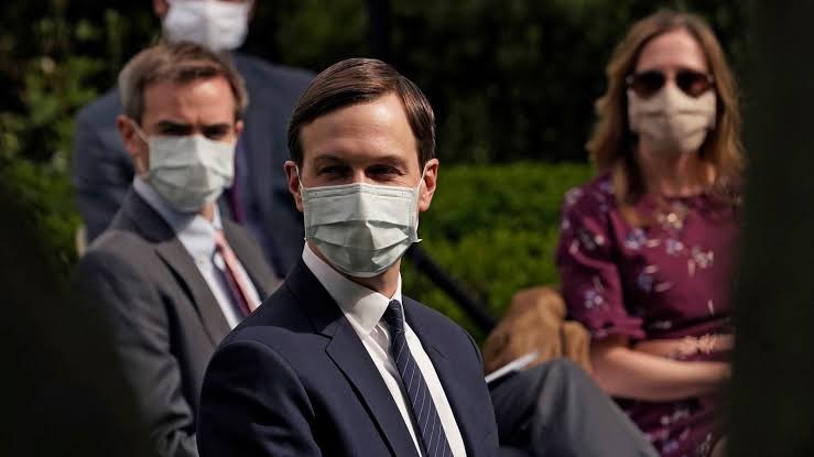 特朗普女婿兼高级顾问贾里德・库什纳(中)也戴上口罩
