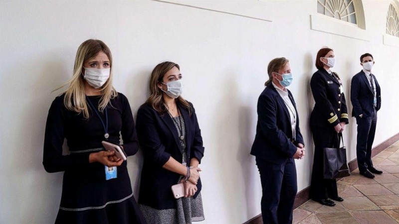 白宫西翼工作人员和特工都戴着口罩