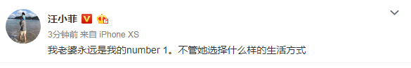 11月5日晚,汪小菲的一条微博动态也引来不少网友关注,汪小菲在微博中写到:“我老婆永远是我的number1。不管她选择什么样的生活方式。”
