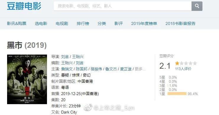12月26日10时许,博主@上帝之鹰_5zn 发现,这部片在豆瓣上能搜到,评分只有2.1分。