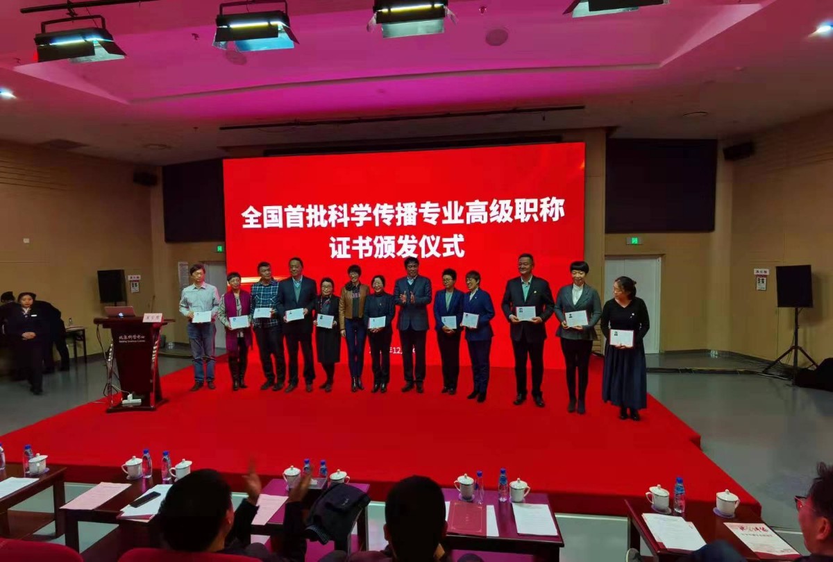 北京率先评出科学传播高级职称。今天下午,全国首批科学传播专业高级职称证书颁发仪式在北京科学中心召开,75人荣获首批科学传播专业高级职称,其中研究馆员15人(正高级职称),副研究馆员60人(副高级职称)。据悉,2020年市人力社保局和市科协将继续组织该专业高级职称评审工作,市人事考试中心将组织科学传播专业初级、中级职称考试工作,为科学传播专业技术人才提供更好的人才评价服务。