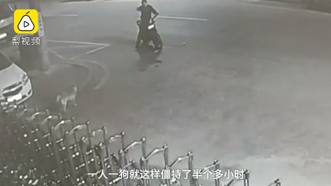 途中一条流浪狗追着邵某汪汪直叫,邵某停车跟狗理论,一人一狗就这样僵持了半个多小时。