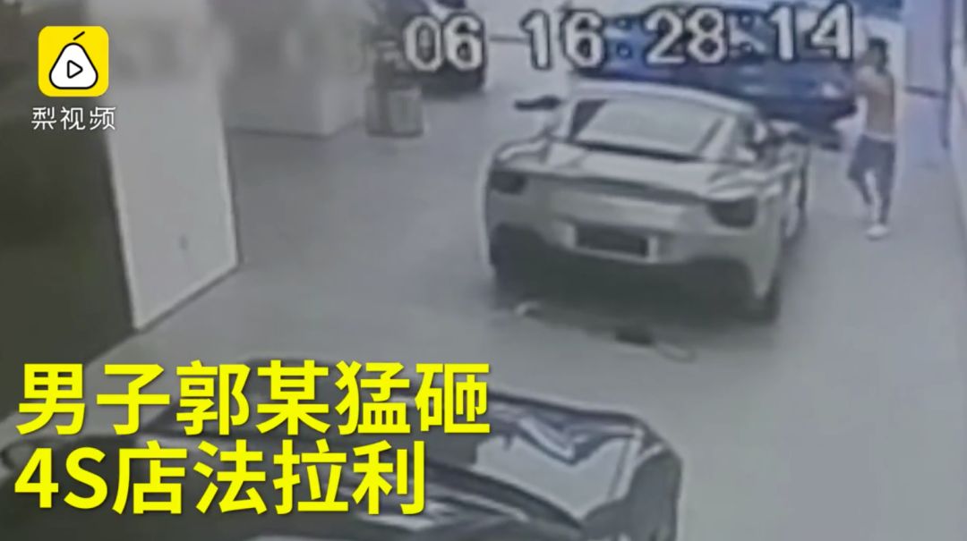 2019年8月6日,湖南长沙攸县的一名男子郭某进入一家4S店,抡起准备好的棒槌,狠砸一辆价值300余万元的法拉利跑车。