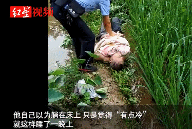 因在池塘中睡了一夜,长时间浸泡致身体浮肿泛白,才让过路群众误当“浮尸”,目前男子已经出院。
