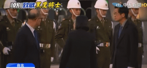 台军“黑鹰”坠机事件造成8名将士死亡,台湾地区领导人蔡英文和“防长”严德发等13日出席相关活动时,现场出现尴尬一幕。当蔡英文、严德发要进入“国防部”时,身旁列队官兵出现一阵慌乱的“胡乱转身”,引网友吐槽。