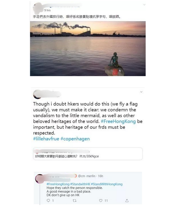 然而,你却几乎看不到这些如今对着丹麦人和西方媒体“道歉”的人,去谴责那些违法破坏香港的公共设施、进行各种恶心的涂鸦、甚至在香港本地的古迹上进行如此破坏的行为——他们反而至今还宣称要和暴徒们“站在一起”、“不割席”、“不谴责”呢。