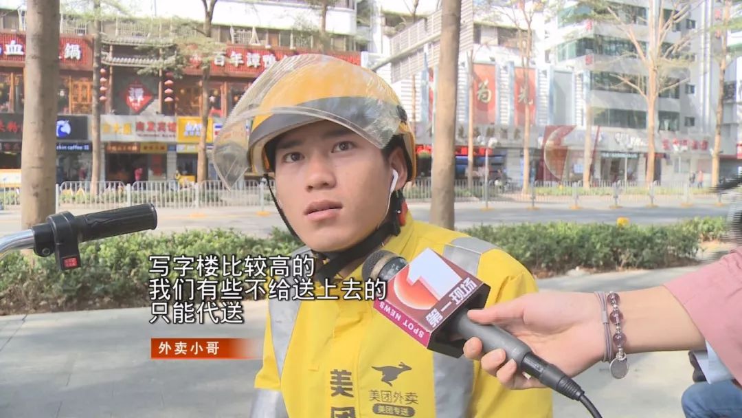 在深圳一些写字楼等场所,外卖小哥可能不能直接送上门,但又碰到人群高峰或者是要赶其他地方的订单,恐怕让小哥们觉得送外卖上楼这最后“100米路”显得尤为艰难。