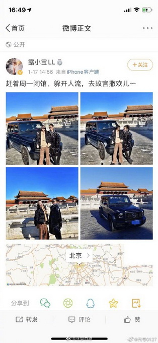 “赶着周一闭馆,躲开人流,去故宫撒欢儿。”微博上的一句话与太和门广场的奔驰合影照,让“露小宝LL”成为网民口诛笔伐的对象。尽管故宫博物院作出回应,承认开车进入故宫事件属实,并向公众诚恳致歉,尽管“露小宝LL”在回怼网友是“柠檬精”之后删除了微博,但引发的舆论并没有平息。