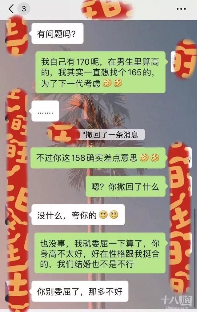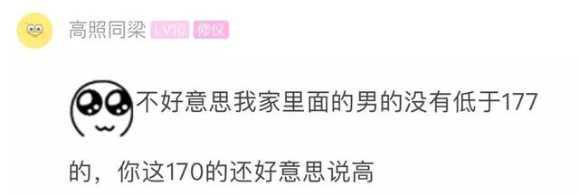 再说了,我身高170,想找一个165的怎么了,虽然她没到,但我也没嫌弃啊,我只是说了下我内心的想法而已,自卑到连实话都听不得了吗?
