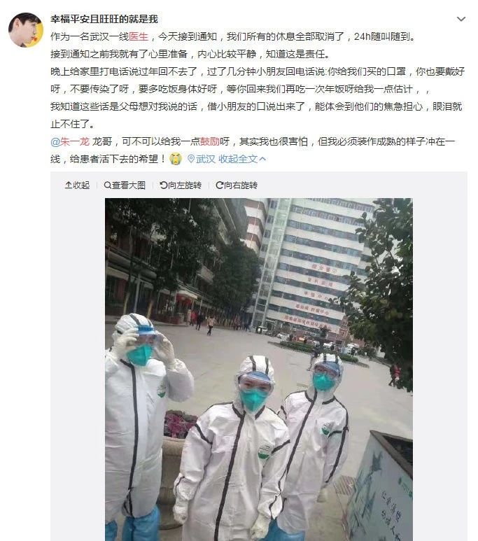 毫无怨言,始终坚守,正如武汉一线医生@幸福平安且旺旺的就是我所说,这是责任:
