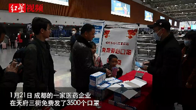 昨日在天府三街免费发了3500个口罩后,1月22日,成都的一家医药企业继续在昭觉寺汽车站和成都东站汽车客运站发放口罩。据介绍,该公司明天还计划在自贡、绵阳发口罩。