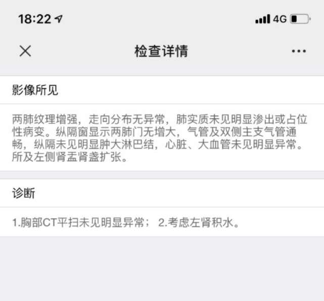 结果CT显示我的肺部呈磨毛玻璃样,病毒性肺炎待排,差不多说明我不幸中枪。