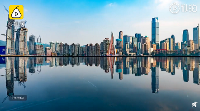2020年5月12日,重庆江北,位于千厮门大桥北端的一个小水池成为网红打卡点,吸引不少游客拍照。因池水倒映出江对岸解放碑的繁华景色,一年四季,一天四时皆有不同美景,被誉为“重庆版天空之镜”。