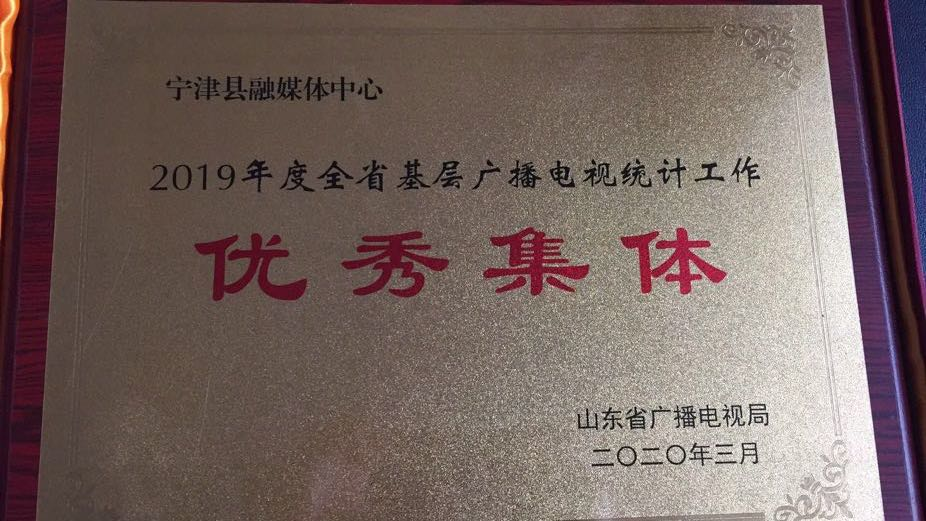 近日,宁津县融媒体中心获得2019年度全省基层广播电视统计工作优秀集体荣誉称号。