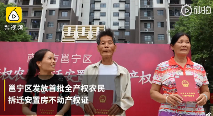 5月25日,广西南宁邕宁区发放首批全产权农民拆迁安置房不动产权证。其中一村民说自己有8套房,住不完,一半用来出租,每月房租收入一万多元,“收租的感觉蛮好”。共两千多户拆迁安置户拿到不动产权证。