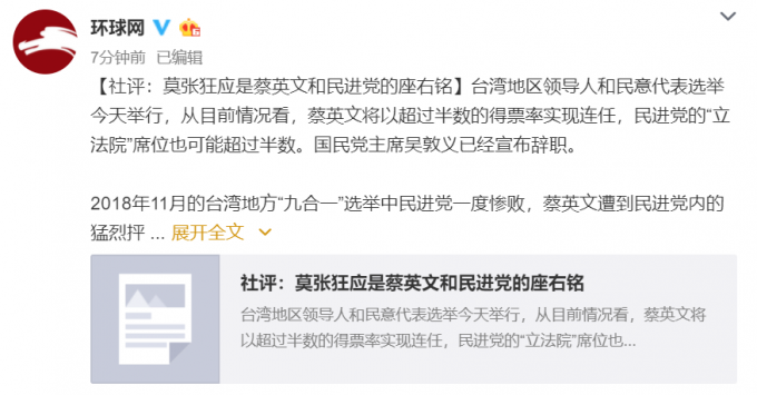 不过要看到,韩国瑜虽然输了这场“总统”选举,但韩流的崛起是真实的,台湾民众要求发展经济改善民生,不想看到两岸尖锐对立的愿望是真实的,中国大陆越来越强大这一事实所产生的关键影响力也是绕不开的。