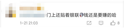 也有不少网友注意到,这家店铺的门口还贴了“银联支付”的标志。↓