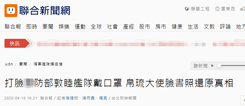 昨日,台湾地区流行疫情指挥中心在记者会公布,台海军“敦睦远航训练支队”中磐石舰上出现3例确诊病例。该舰队曾3月12日至15日停靠帕劳,离开帕劳后在公海航行近30天,4月15日舰上成员在台湾左营军港下船。梅家树在15日的记者会上称,“敦睦舰队”官兵在帕劳活动期间全程配戴口罩。而这一说法随即遭到打脸。