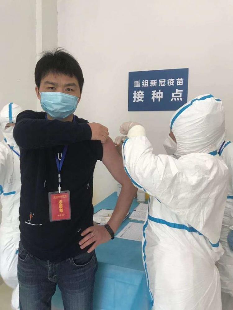 虽然第一期落下了很不开心,但丈夫被选上了疫苗二期志愿者。4月12日,李智成为第72号志愿者,注射了疫苗,同行的还有姐姐、姐夫。当得知需要51岁以上年龄组志愿者时,公公婆婆也报了名,并在4月16日完成了注射。