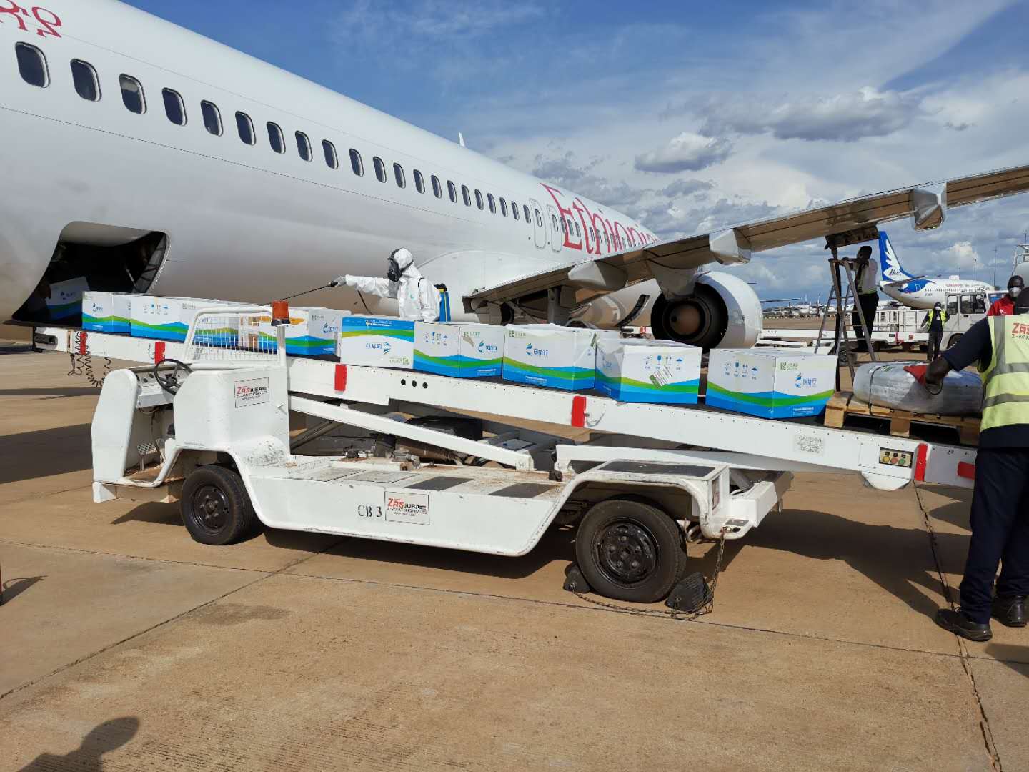 4月17日,马云和阿里巴巴基金会第二批援助南苏丹医疗物资运抵朱巴国际机场。该批物资包括呼吸机、病毒采集保存管、核酸提取盒、医用防护服、防护面罩、医用手套、额温枪等,将用于南新冠肺炎疫情防控救治工作。中国驻南苏丹大使华宁、南苏丹驻华大使杜库、南外交部中国司司长多米尼克赴机场出席物资交接仪式。