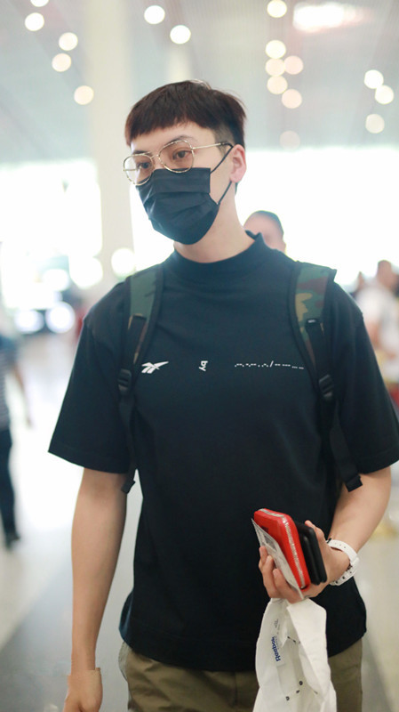 穿着上,其实用一个字就能够形容,那就是:潮。外穿黑色的短袖,背上迷彩色的双肩包看着特别man,另外,帽子反着戴显得很有少年感,明明穿着长裤,却把裤子给撩上去露出黄颜色的袜子真的是够潮的。
