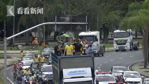 当天下午,博索纳罗在巴西利亚向数百人发表了讲话,且并未佩戴口罩。抗议者穿上了巴西黄绿相间的球衣,以示对博索纳罗的支持。