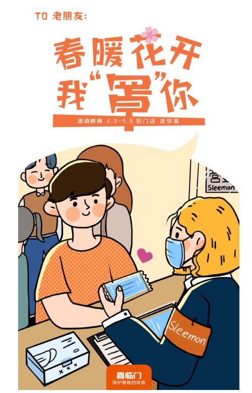 疫情终将会过去,喜临门诚邀广大消费者到线下门店体验,感受喜临门床垫等诸多产品的高科技魅力。日前,喜临门推出了暖心行动——“春暖花开我“罩”你”,4月9日至5月5日,幸运老客户前往喜临门线下门店,即可免费领取,享多重壕礼,喜临门欢迎您的大驾光临!
