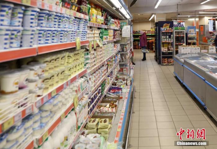 当地时间3月30日,莫斯科所有市民从当日起,不分年龄开始在家自我隔离。图为超市里物资充裕,人员稀少。 中新社记者 王修君 摄