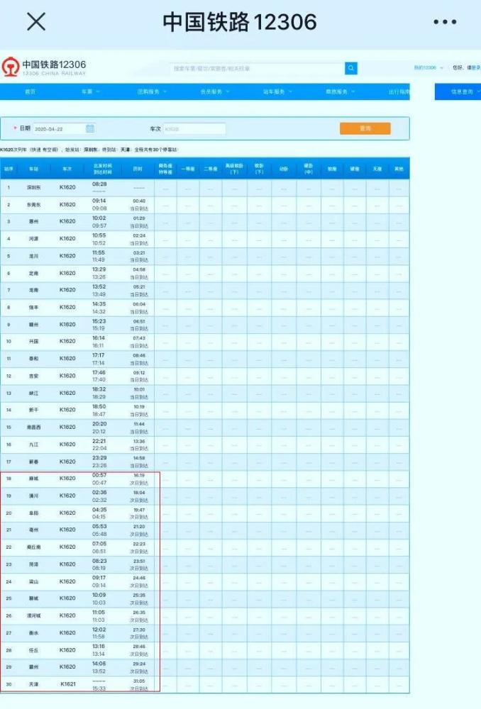 提醒4月19日乘坐过K1620次列车、