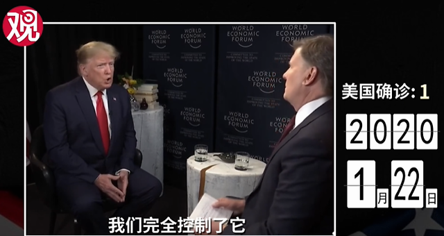 1月21日美国出现首例本土病例后,时隔一天(22日),特朗普在达沃斯接受美媒CNBC采访时说:“不担心。我们已经完全控制住了,就一个案例,一切都会好起来的。”