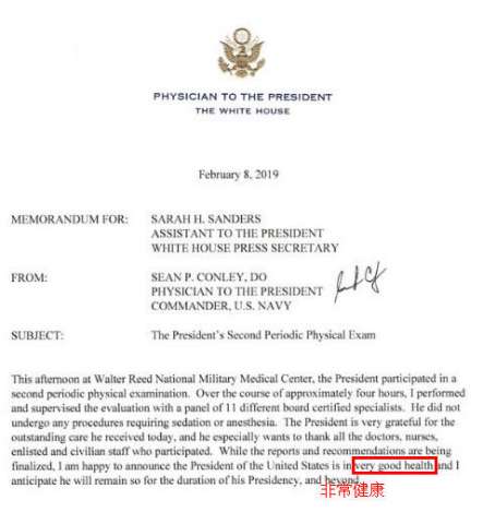 也罢,我们不妨看看特朗普2019年的体检报告吧。