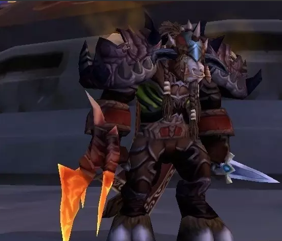 拉风程度,多彩剑独一档,大个模型加华丽设计,配盗贼血牙套成一代经典。放血者次之,毕竟不是唯一造型(其实多彩剑也有同模型兄弟),常常双刀放血傻傻分不清楚。黑龙爪见仁见智,有人说难看,毕竟爪子多不招人待见,但也有非正常审美,认为兽人拿着很拉风。