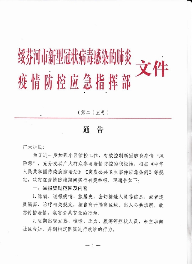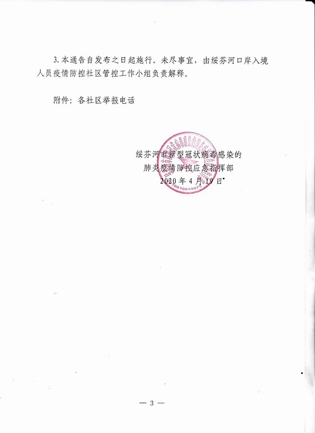 据绥芬河市人民政府网站消息,4月19日,绥芬河市新冠肺炎疫情防控应急指挥部发布第二十五号通告,