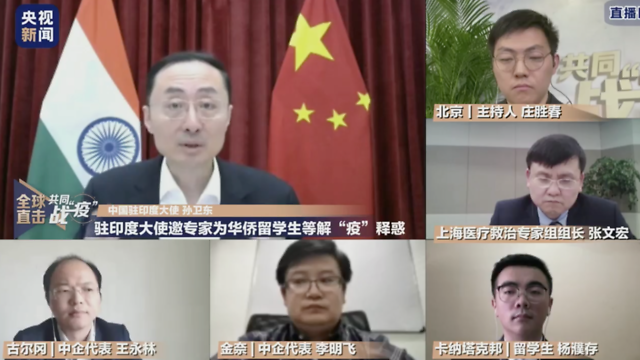 截至当地时间4月22日8时,印度新冠肺炎累计确诊病例为19984例。中国驻印度大使孙卫东邀请上海医疗救治专家组组长张文宏,与在印华人华侨、留学生等视频连线,就当前印度疫情形势与个人防护等热点问题进行交流,答疑释惑。