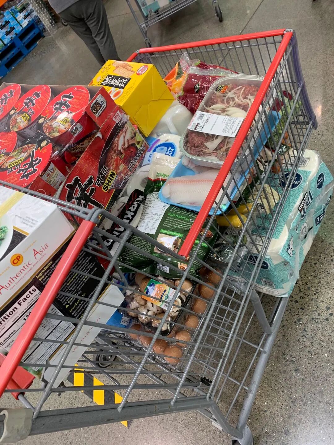 近日,梁柯永去了趟港区的Costco(美国知名连锁超市)。那里上午7至9点是老人购物的时间,他在外面等了大约15分钟,里面的人流量大概是平常的一半,95%的顾客都有带口罩,30%的人还带了手套。