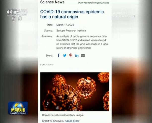 世卫组织发言人 法蒂拉·沙伊布:世卫组织正在抗击新冠肺炎大流行,同时也在抗击虚假信息大流行。所有已知证据都表明,新冠病毒来自动物,而不是经实验室人工干预或制造出来。新冠病毒最有可能来自蝙蝠,但还不清楚是怎么传播给人类的,肯定存在中间宿主。世卫组织欢迎各国科研人员寻找新冠病毒来源,世卫组织正以科学为依据参与众多专家就此展开的调查工作。