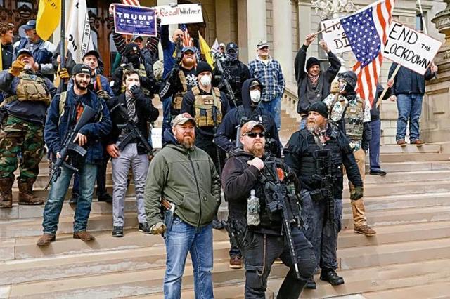 密西根州在4月15日,1000多名示威者违反居家令,部分示威者竟然持枪游行。