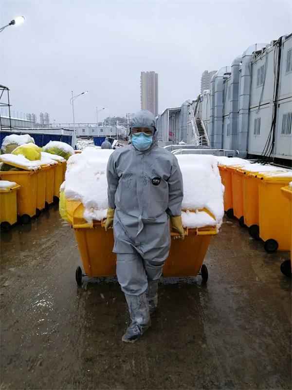 李海元是珠江管理抗疫志愿队临时党支部书记,2月初,52岁的他带着56粒降压药,领着队员们辗转抵达武汉,在火神山医院建成翌日,冒着大雪驰援前线,肩负起火神山医院20个隔离病区的保洁、消杀、医疗废物垃圾清运及其他后勤保障工作,在50余天里深入火神山医院隔离区消杀200余次,消杀面积达12万余平方米,搬运医废垃圾15000余桶,拖运垃圾徒步了3000余公里。