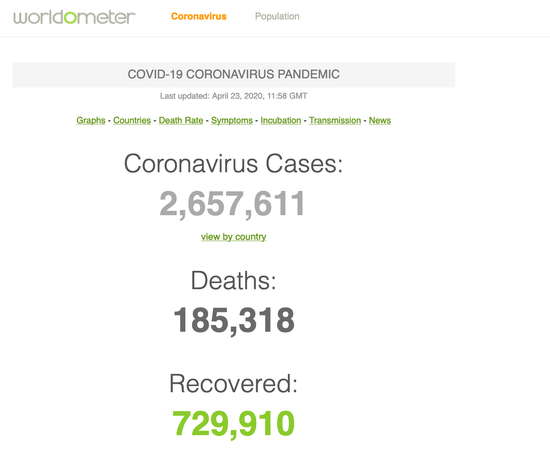 机构统计:全球累计新冠肺炎确诊超265万例,死亡18.5万例