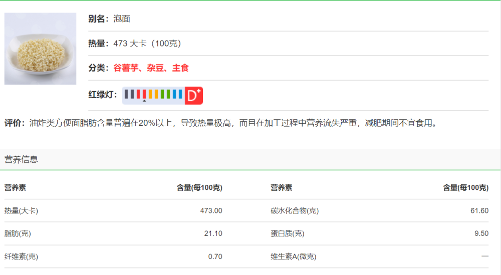 从薄荷网站查询到的白粥营养信息