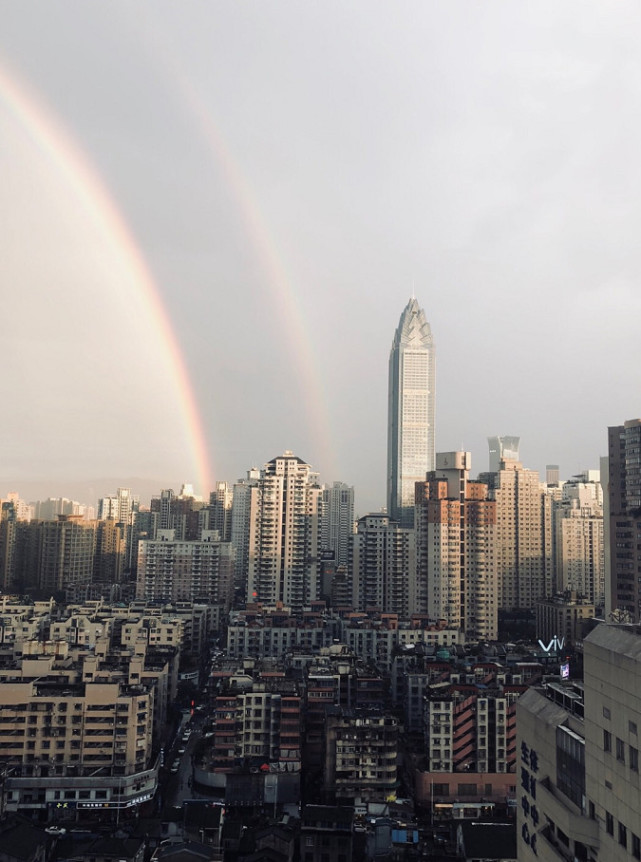 结果没一会儿转过头就看到窗外两道!又大又亮的彩虹!