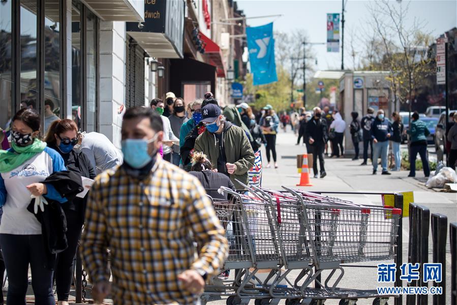 4月25日,人们在美国纽约布鲁克林区一处新冠抗体检测点外排队等待检测。 新华社发(郭克摄)