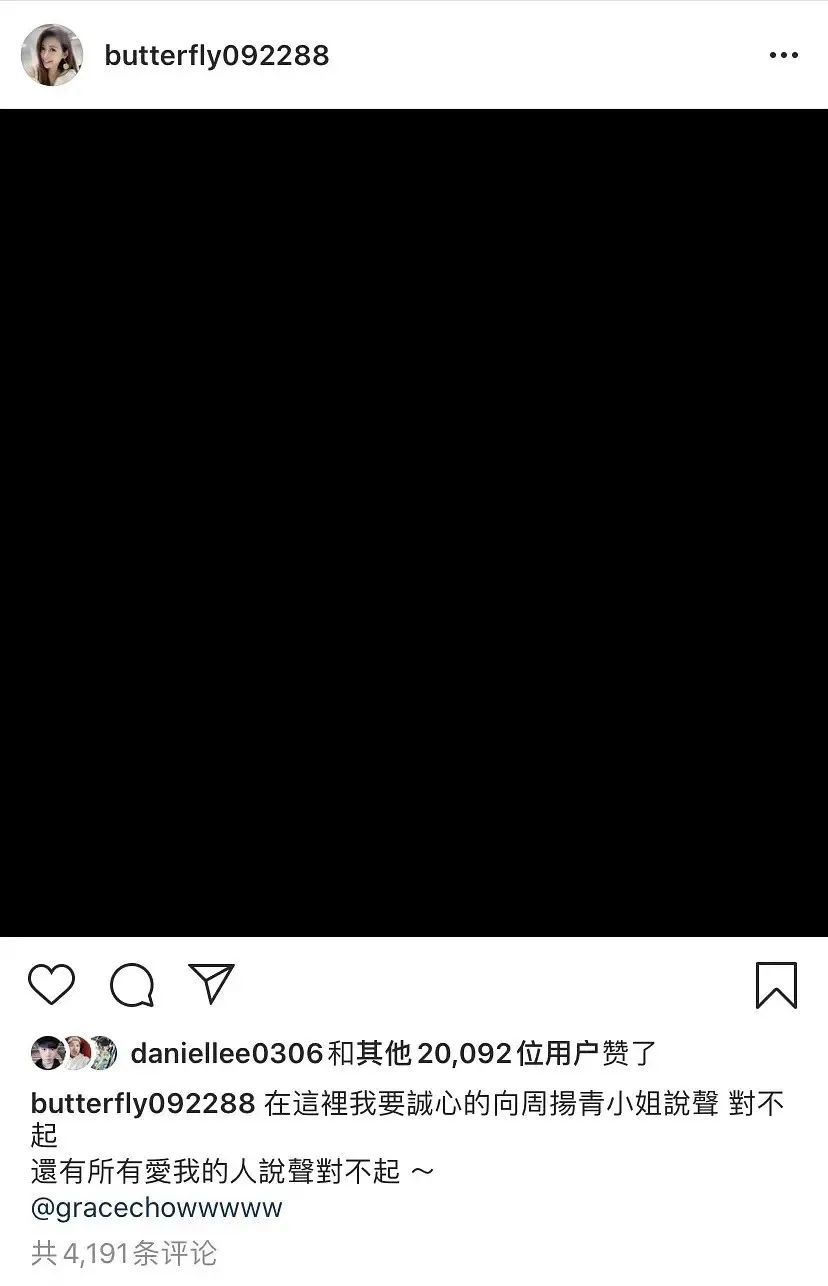 而å¦ä¸€æ¶‰äº‹ä¸»è§’之一的“旗下艺人â€è´è¶å§å§ï¼Œä¹Ÿåœ¨ins公开å‘周扬é’铿‰ï¼š